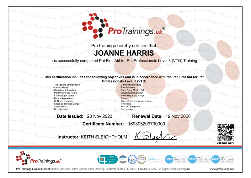Our ethos is to continually broaden our current knowledge and training to enable us to consistantly maintain professional animal care to the highest of standards.